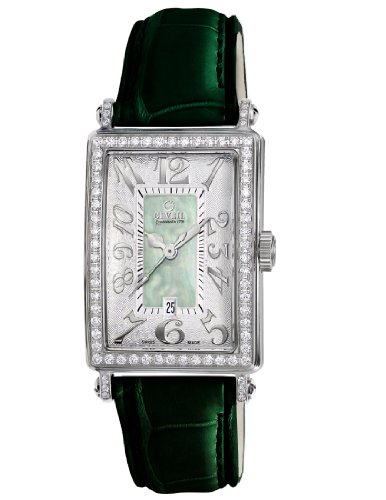 Gevril Women's 7246NL Mini Quartz Avenue of Americas Green Diamond Watch - With a combination of bold dial with feminine details, this woman shows diamond accented quartz (model 7246NL) from Gevril Avenue of the Americas Mini collection is an ideal solution for small wrists. The bezel is filled with gorgeous white Top Wesselton diamonds framed - which also extend to the lugs - created by precise CNC machines and set the clock with diamond organizations unparalleled skill. The clock also features a variety of small artistic flourishes including a unique pattern guilloche dial a, Gevril Women's 7246NL Mini Quartz Avenue of Americas Green Diamond Watch.