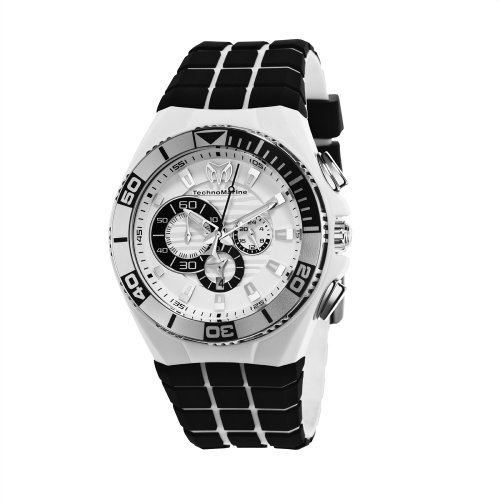 TechnoMarine Men's 112015 Cruise Locker Nylon Strap Watch - Casual Clock, Japanese quartz movement, chronograph, included: additional black silicone strap with polished stainless steel silver-tone buckle, additional black cover gel case strap over white canvas with a polished stainless steel silver-tone buckle and a black cap Housing gel and watch tools, Silver hands and markers with luminous accents, Analog date display, Small black numbers and indices on outer concave dial, Polished stainless steel silver-tone unidirectional bezel together, TechnoMarine Men's 112015 Cruise Locker Nylon Strap Watch.