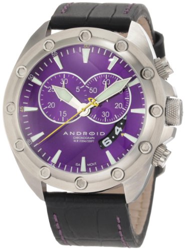 Android Men's AD465BPU Concept T 2 Chronograph Purple Watch - Android Swiss Chronograph Oversized Men AD465BPU has a range of 49mm thick, detailed with a 19mm stainless steel case, bezel, protected crown, markers, lights and purple hands on the face, genuine black leather strap with buckle stainless steel and can hold up to 8 3/4 inches wrist. Android AD465BPU weighs 4.1 ounces Android AD465BPU This is brand new in the original box and comes with warranty and manual., Android Men's AD465BPU Concept T 2 Chronograph Purple Watch.