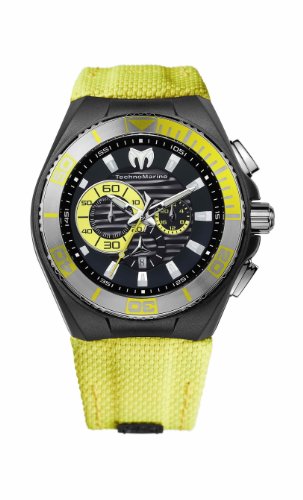 TechnoMarine Men's 112016 Cruise Locker Nylon Strap Watch - Casual Clock, Japanese quartz movement, chronograph, included: additional black silicone strap with polished stainless steel silver-tone buckle, additional black cover gel case, more yellow canvas strap with polished stainless steel silver-tone stainless steel buckle and a yellow lid Housing gel and watch tools , silver hands and markers with luminous accents, Analog date display, Small white numbers and indices on outer concave dial, Polished stainless steel silver-tone bezel home, TechnoMarine Men's 112016 Cruise Locker Nylon Strap Watch.