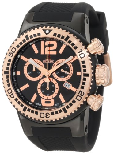 Swiss Precimax Men's SP12036 Titan Elite Black Dial with Black Silicone Band Watch - Titan Elite is a true testament of Swiss engineering. This timepiece of high quality Swiss Precimax certainly not disappoint. Texture, black dial with rose gold bezel is raised by rose gold markers and counters are accented as easy to read display and a catchy accessories. Aspects of Swiss precision chronograph movement parts only with the addition of a bold, all reinforced black silicone strap, secure the accessor powerful timekeeping, Swiss Precimax Men's SP12036 Titan Elite Black Dial with Black Silicone Band Watch.