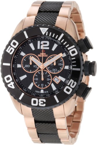 Swiss Precimax Men's SP12014 Deep Blue Precision Reserve Black Dial with Rose-Gold Stainless-Steel Band Watch - A change of pace is always refreshing to Precimax Swiss clock is just what the doctor ordered. This clock has a clear style, two-tone rose gold and black belt, who is bound by a secure clasp with double push-button safety. Stainless steel screw-down crown protects the inner workings of the clock, provides the reliable timepieces with a resistance of 100 meters of water. A real eye-catcher in the three black dials are powered by a precision chronograph mov, Swiss Precimax Men's SP12014 Deep Blue Precision Reserve Black Dial with Rose-Gold Stainless-Steel Band Watch.