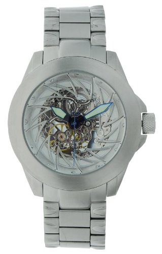 Android Ninja 50 Skeleton Automatic Men's Watch Silvertone Dial - The Android Ninja 50 is a self-winding clock with a twist. Seagull automatic movement is visible on the wrist and highlights of 12 ninja blades. The screws, which hold each sheet position as indexes that makes it a unique timepiece uses. Bright blue hour and minute hands are and are easy to read in daylight or in the dark. The movement is also visible from the rear through a back door mineral glass exposure. Simply return to see the rotor winding in action, Android Ninja 50 Skeleton Automatic Men's Watch Silvertone Dial.