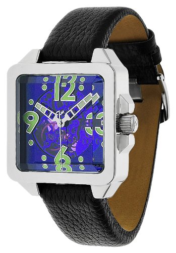 Android Men's AD533ABU Galactopus 40 Skeleton Automatic Blue Watch - Large, striking watch with a square case and a chamfered hardened mineral glass with a hint of blue. Features highly luminescent, oversized indexes, luminous hour and minute, protected push-pull crown and exposure (see of) the case back. The clock is an automatic Seagull TY2807, driven movement. Case size is 40 mm square 15 mm thick with a nice presence on the wrist., Android Men's AD533ABU Galactopus 40 Skeleton Automatic Blue Watch.