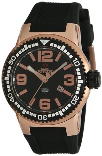 Swiss Precimax Men's SP12030 Titan Black Dial with Black Silicone Band Watch - Titan is offering a bold clock with a lot. This elegant Swiss Precimax clock is the perfect addition to a collector shows cache. Quality, black silicone strap is firmly secured with a clasp in rose gold buckle and optimum comfort without sacrificing style. The black dial is complemented by eye-catching stainless steel, rose gold houses with black IP bezel and crown, the super-bright hour and minute hands, and a date display indicates by a Swiss watch parts supplied., Swiss Precimax Men's SP12030 Titan Black Dial with Black Silicone Band Watch.